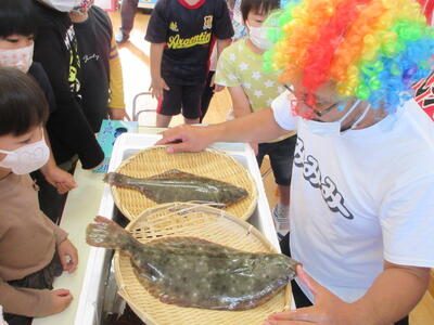 子どもたちに貴重な体験をさせてくださった水産課の皆さん、観光まちづくりビューローの皆さん、そして楽しい演出と活魚を準備してくださった上野台豊商店の皆さん、本当にありがとうございました。
