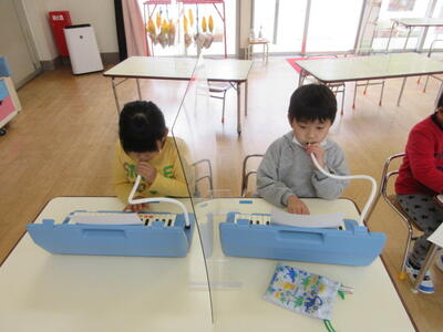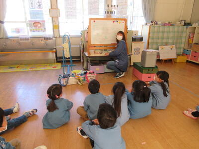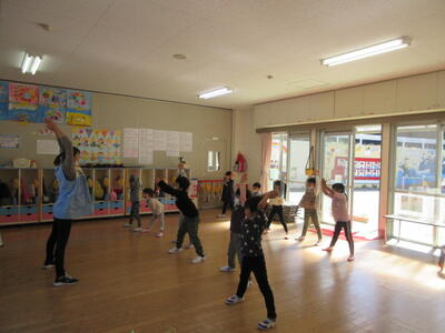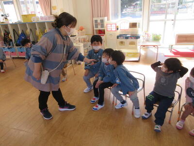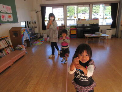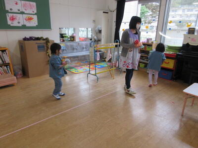ほし組は、全身を使ったリズム遊びや鍵盤ハーモニカ遊びを楽しんでいました。