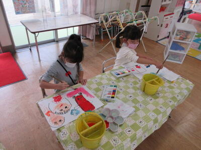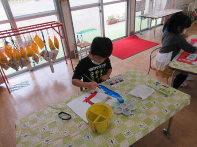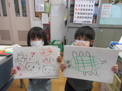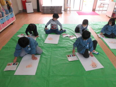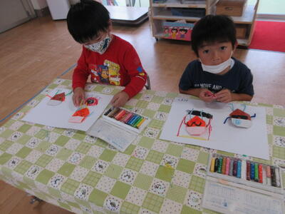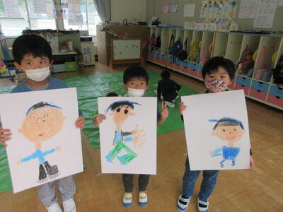 ほし組さんは、芋掘りをしている自分を描いていました。
