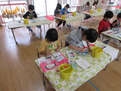 芋掘りをした後、お芋の絵をいたひよこ組さん。