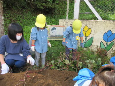 土の奥までもぐりこんでいるサツマイモを探して、みんな夢中になって掘っていました。