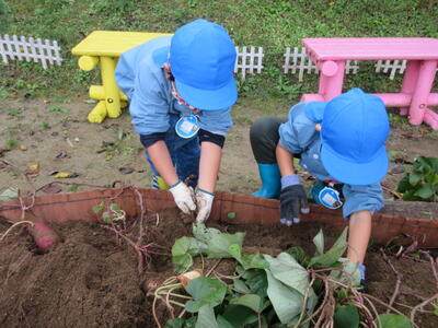 力いっぱいツルを引っ張ったり、お芋の重さを感じたりと、秋の自然を全身で楽しんだ一日となりました。