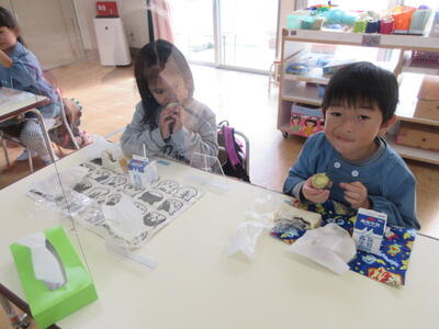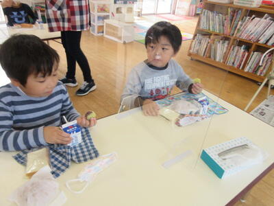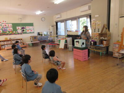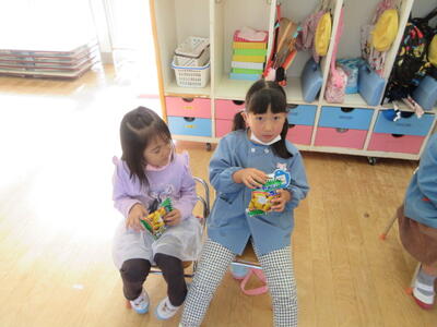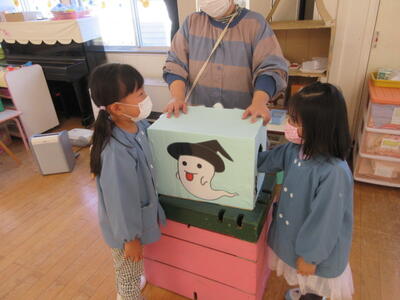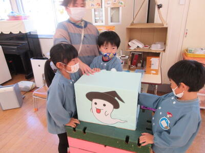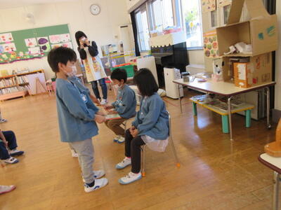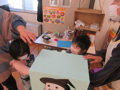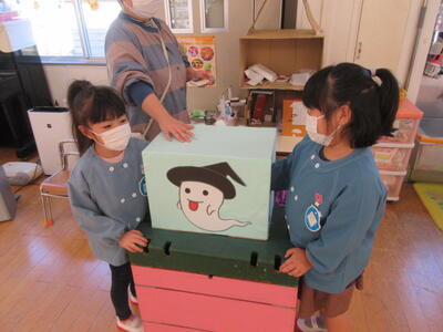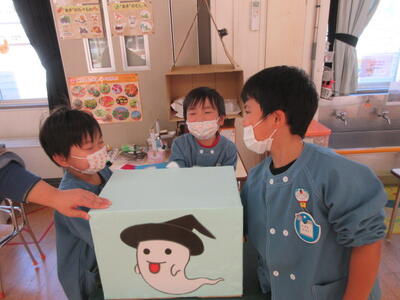 お楽しみコーナーでは、みんなで「箱の中身はなんだろな?」のクイズを楽しみました。
