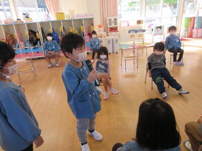 今日は、10月生まれのお友達の誕生会がありました。司会のお友達も、2回目になり自信をもって進めてくれました。