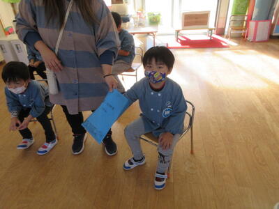 絵本のプレゼントカードをもらい、みんなからお祝いの歌をうたってもらいました。