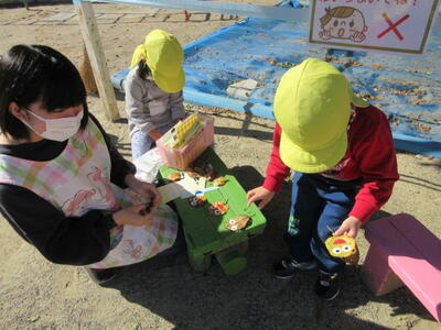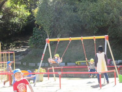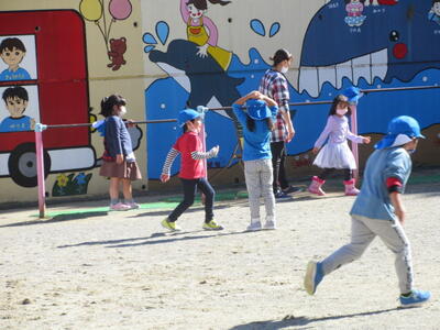 気持ちの良い青空の下、戸外遊びを楽しみました。