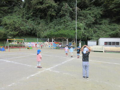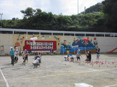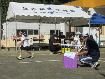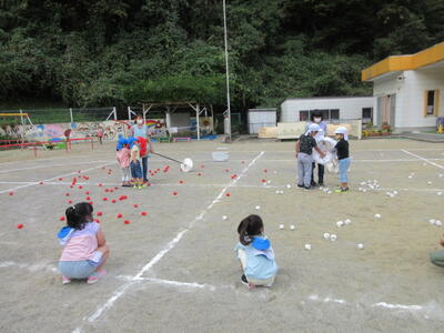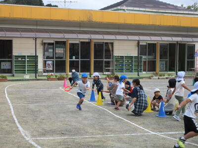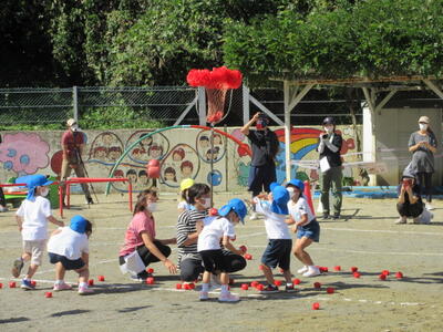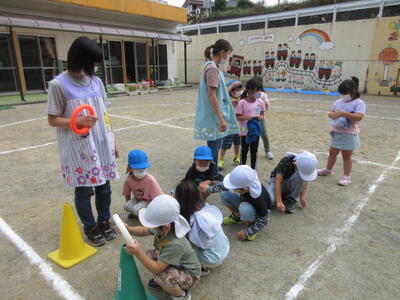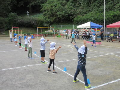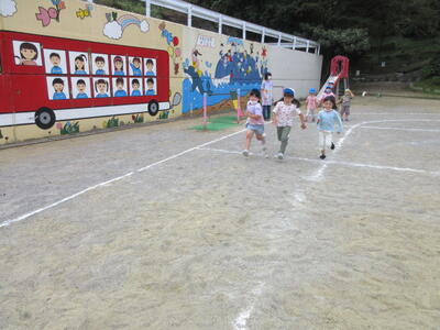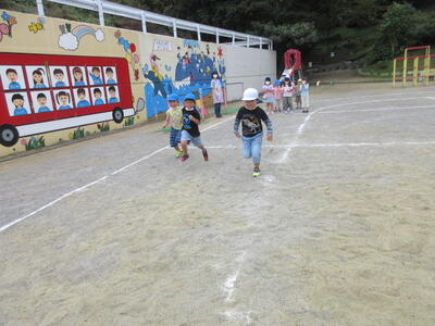 運動会も終わり、自信がついた子どもたち。運動会では保護者の皆様には、大変お世話になり、ありがとうございました。今日は他のクラスの競技も楽しみたいと、運動会ごっこを楽しんでいました。