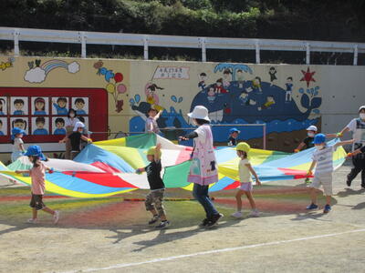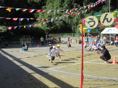 昨日の台風の影響が心配されましたが大きな被害もなく、晴天に恵まれた一日になり、運動会も園庭で実施することができました。予行の経験から自信をもって楽しみに運動会に参加できた子どもたち。おうちの人の声援を受け、さらにたくさんのパワーをもらって元気いっぱい駆け抜けることができました。
