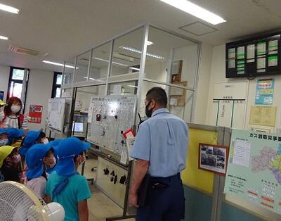 常磐消防署について、署員の方のお話を聞きました。とても素敵な姿勢ですね。