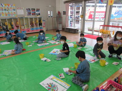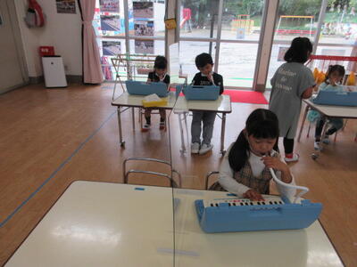 ほし組は、運動会の楽しかった思い出をのびのびと描いたり、鍵盤ハーモニカに関心をもって友達と弾いたりすることを楽しんでいます。