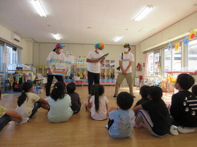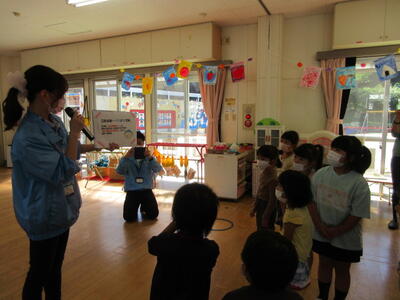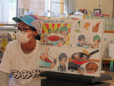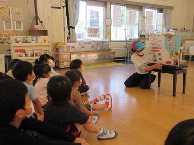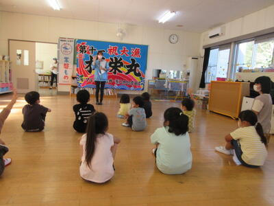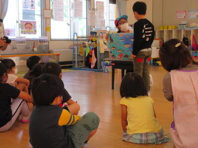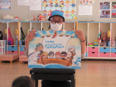 みみみプロジェクトによる、「いわきのみみみー」の紙芝居では、海やいわきの郷土料理のポーポー焼きの作り方などにふれるお話をしていただきました。