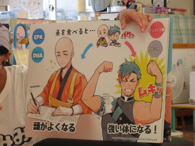 「漁師さんや魚屋さんみんなが力を合わせて美味しいお魚を届けているから、これからもたくさんお魚を食べてね!」