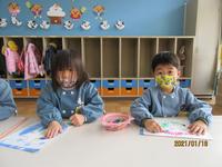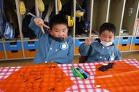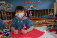 そらぐみは、豆まき会に向けて鬼の帽子作りに取り組みました