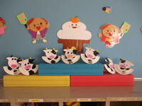 年少・年中組は、今年の干支の「うし」を作り、壁面に飾りました。