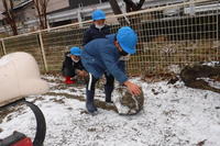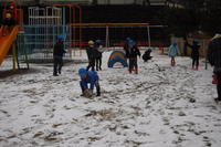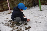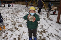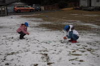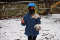登園するとすぐに園庭へ出て、雪に触れたり、雪だるま作りをしたりと、楽しみました