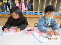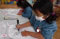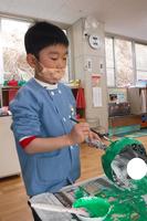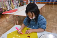 年長組は、カラービニールに好きな絵を描いて「凧作り」をしました。