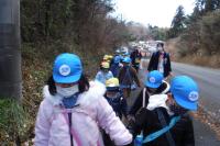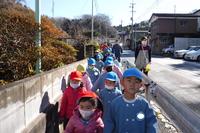 先日の交通教室で学んだ交通ルールを守りながら、縦割りグループで歩いて行きました。