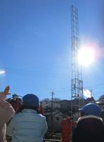 校舎内探検の後は、校庭をお借りし、凧揚げをしました。