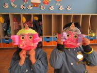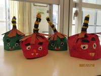 にじぐみ・ほしぐみでは、豆まき会に向けて、鬼の帽子・お面づくりに取り組みました
