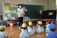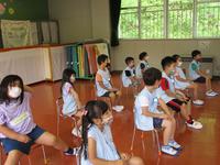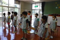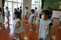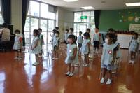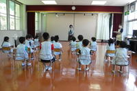 園長先生からお話をいただき、1学期の振り返りをしたり、夏休みの過ごし方や約束事を確認しました。