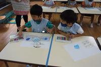 また、クラス活動では、年長組は「はじき絵」に挑戦して楽しみました!