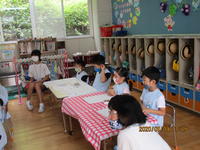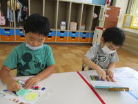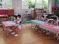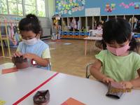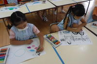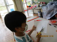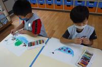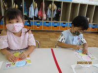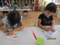 今週から二学期が始まりましたが、週末の疲れにも配慮して、年少・年中組は製作活動を楽しみました