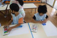年長組も、個人の絵の具を使って虹を描いたりしました