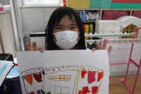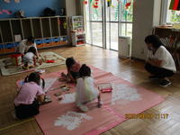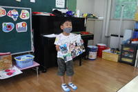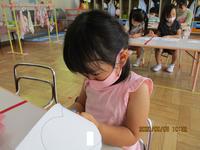 その後、クラスに戻ってから、年長組は先週の夏まつりの絵を描きました