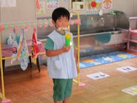 年長組3名に、みんなの前で1学期の思い出を話してもらいました