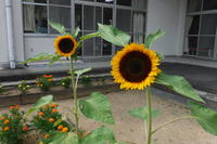 1学期に子供たちと植えたひまわりやマリーゴールドが、大きな花を咲かせています。
