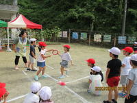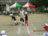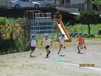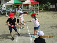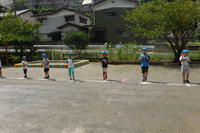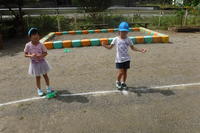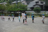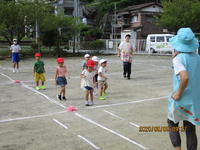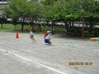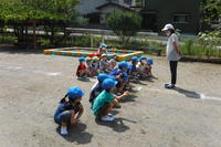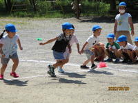 運動会に向けての戸外活動は、暑さに配慮し、年長組の鼓笛と、全クラスのリレーを練習し、短時間で終わるようにしました。