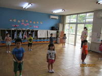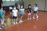 年中・年少組は、室内の涼しい場所でダンスや体操を練習しました!