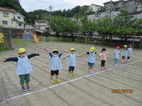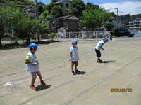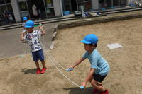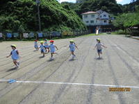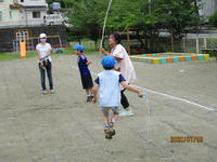 年長組は、朝の涼しい時間帯に、なわとびの練習をしました。
