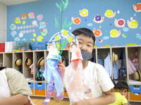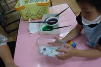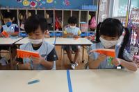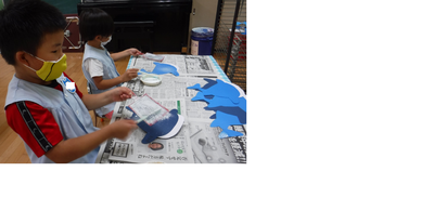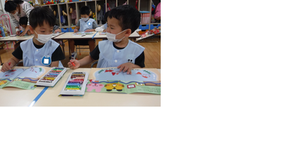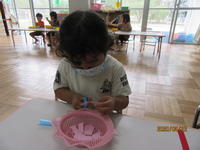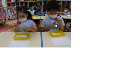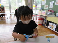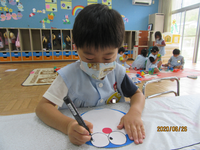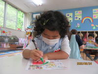 年長組は、PTA主催の夏まつりに向けてうちわ作りを行いました