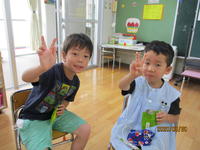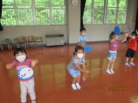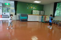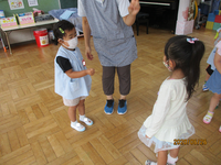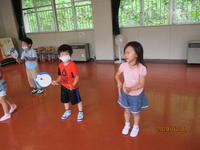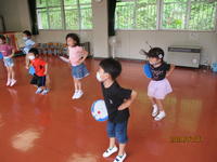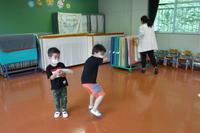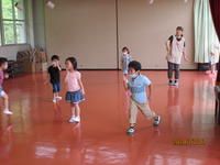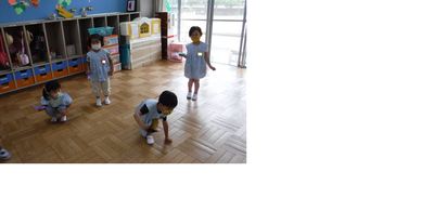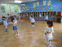 今日は、年少・年中組は、遊戯室で夏まつりに踊る音頭を練習したり、「だるまさんがころんだ」などのゲーム遊びをして楽しみました