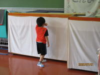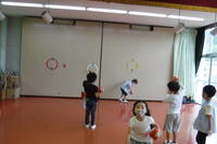 また、新聞紙で作った個人のボールで、的当てを楽しみました。