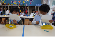 製作の時間には、折り紙で「くるくる回転するように飛ぶ鳥」を作ってみました