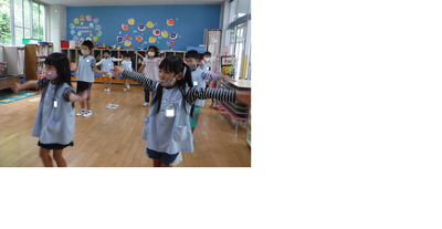 「ひこうき」のポーズで、ソーシャルディスタンスの取り方を普段の保育に取り入れ、意識できるようにしています