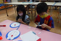 また今日は、夏まつりに使うドラえもんのうちわを完成させました