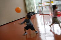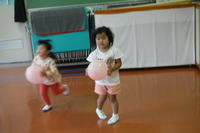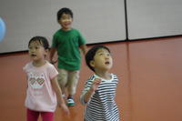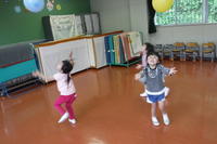 両手で上に投げる、キャッチする、風船の落下点まで走って行って取る、といった一連の動きを楽しみながら、全身を動かしました