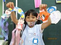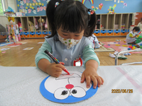 年中組は、七夕製作の続きで、織姫・彦星の飾りに顔を描きました。