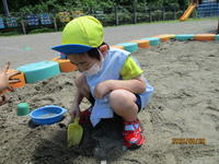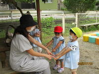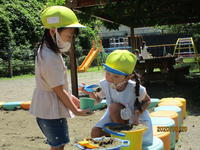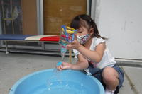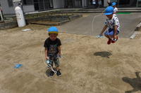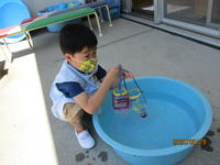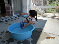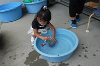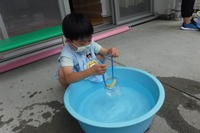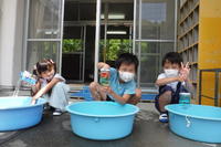 お昼前には気温が高くなってきたので、たらいで水に触れて涼しく遊びました