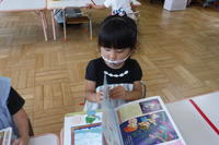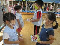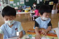 今日は年中・年少組では、月間絵本の梅雨について書かれたページを読みながら、初夏の過ごし方について指導をしました。
