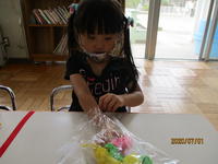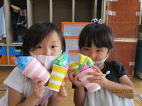 年長児は七夕のちょうちん飾りを作り、今日で完成です。