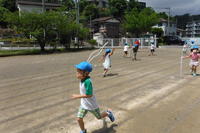 年少・年中児は、かけっこをしたり、砂場で遊んだりしました。