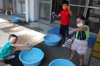 また年長組も、たらいで水遊びをして涼みながら過ごしました