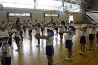 腕を前に回す練習や、駆け足でなわをまたぐ練習などもして、なわを回す感覚をつかんでいました。