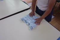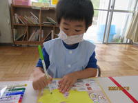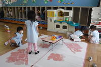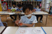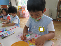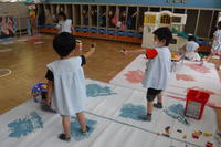 ほし組さんは、スポンジを使って「にじみ絵」に挑戦