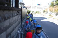 本園前の歩道はとても狭いのですが、子供たちは安全に気を付けて歩くことができました
