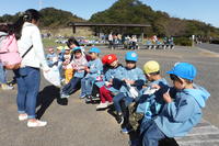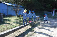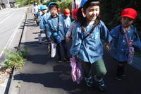 帰り道、「せんせい、つかれた…。」と話す年少組の姿を見て、年長組のお兄さん、お姉さんは自ら進んで年少児の荷物を持ってあげていました